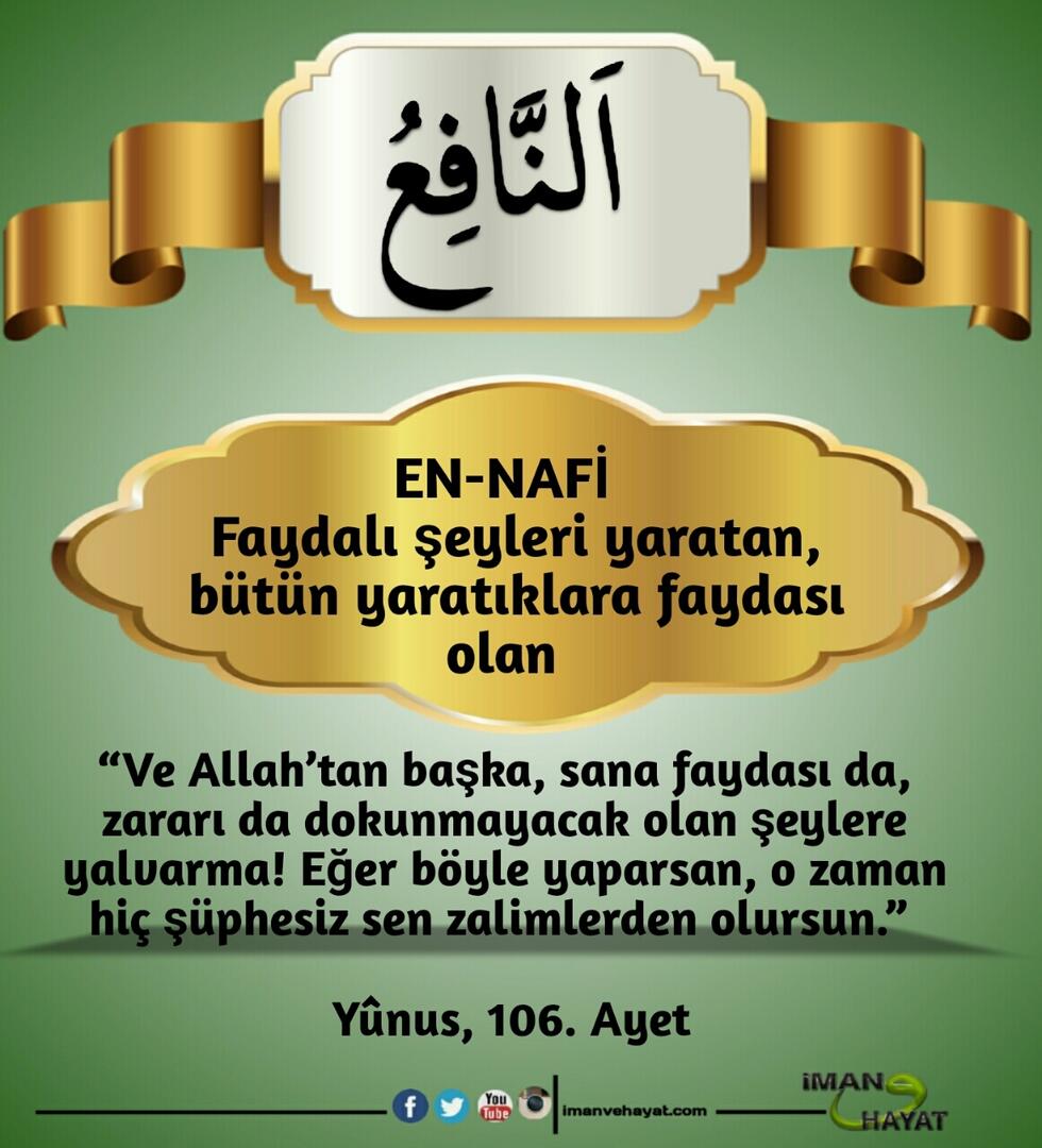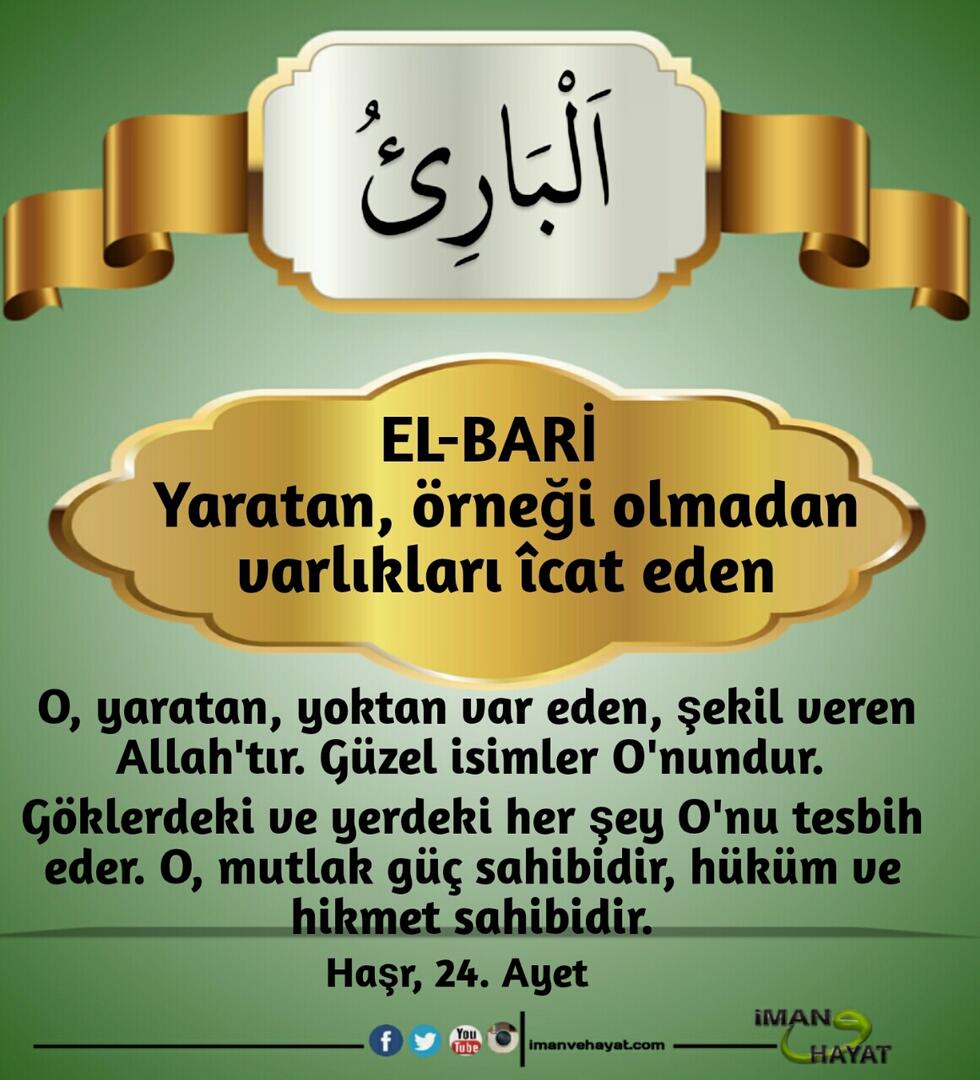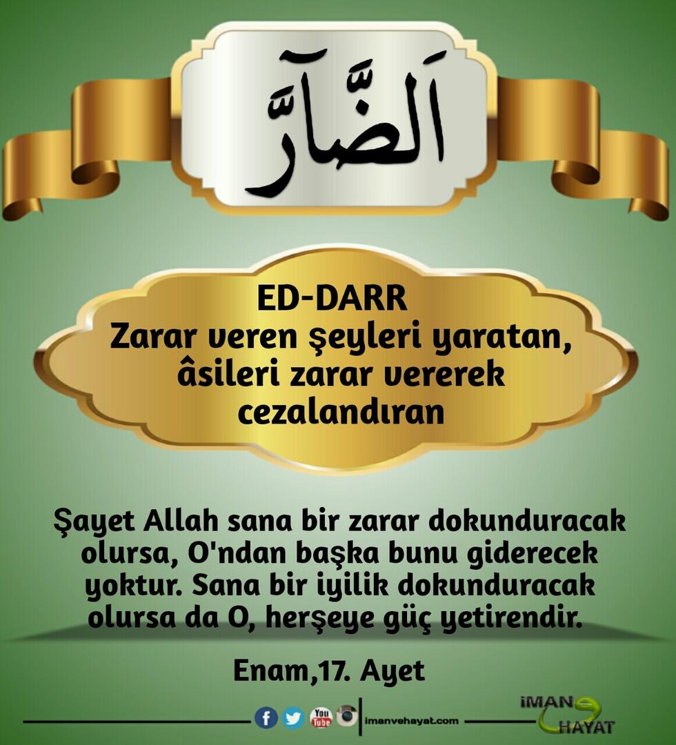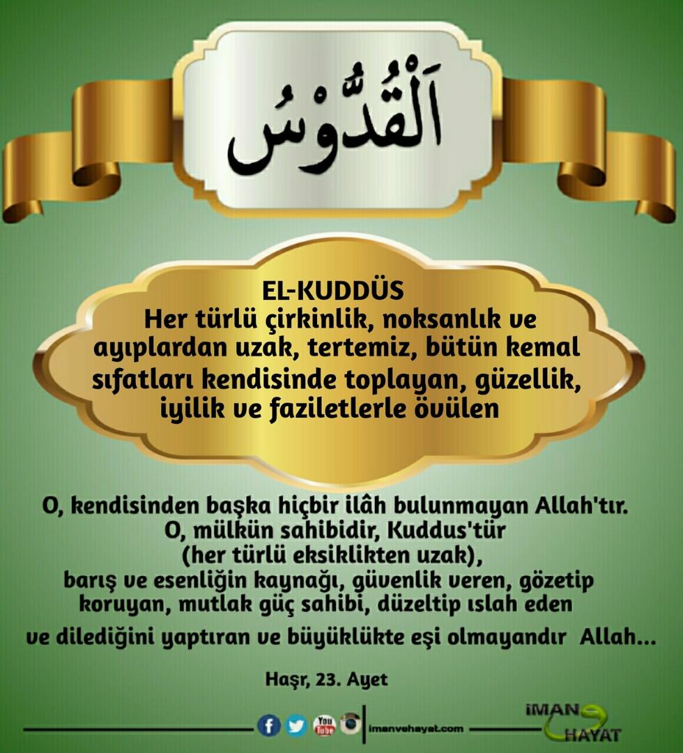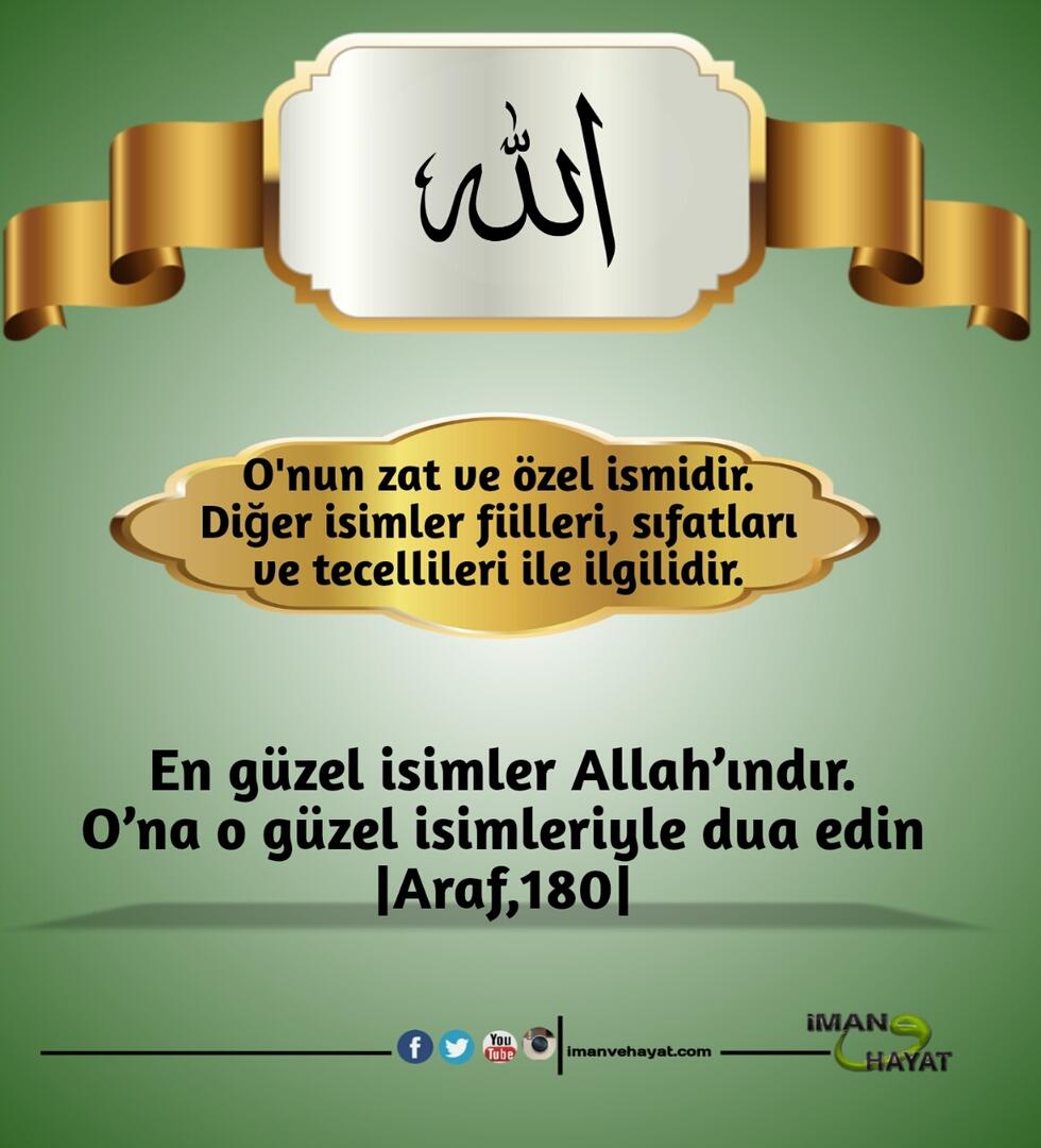 “İsimlerin en güzeli Allah’ındır. Öyleyse O’na bunlarla dua edin. O’nun isimlerinde aykırılığa ve inkara sapanları bırakın. Yapmakta oldukları dolayısıyla yakında cezalandırılacaklardır.” (Araf,180)