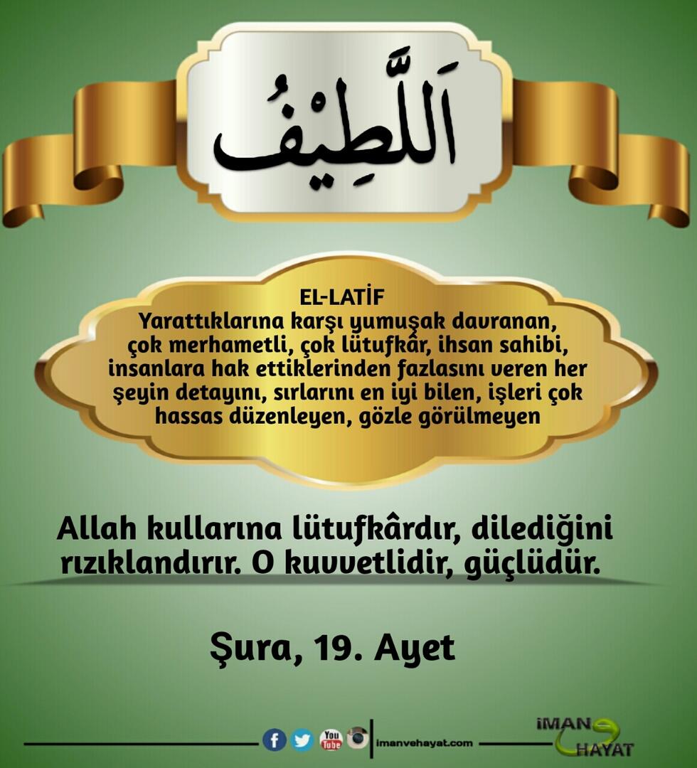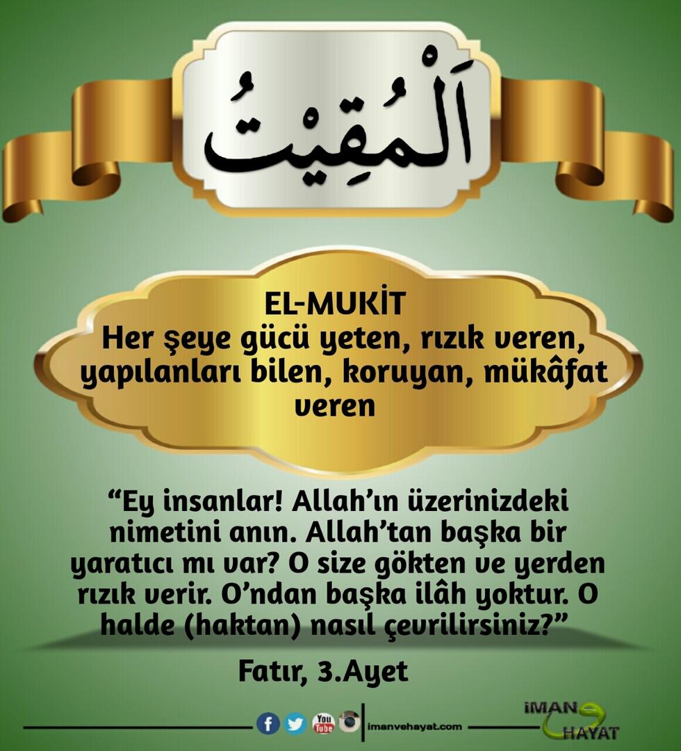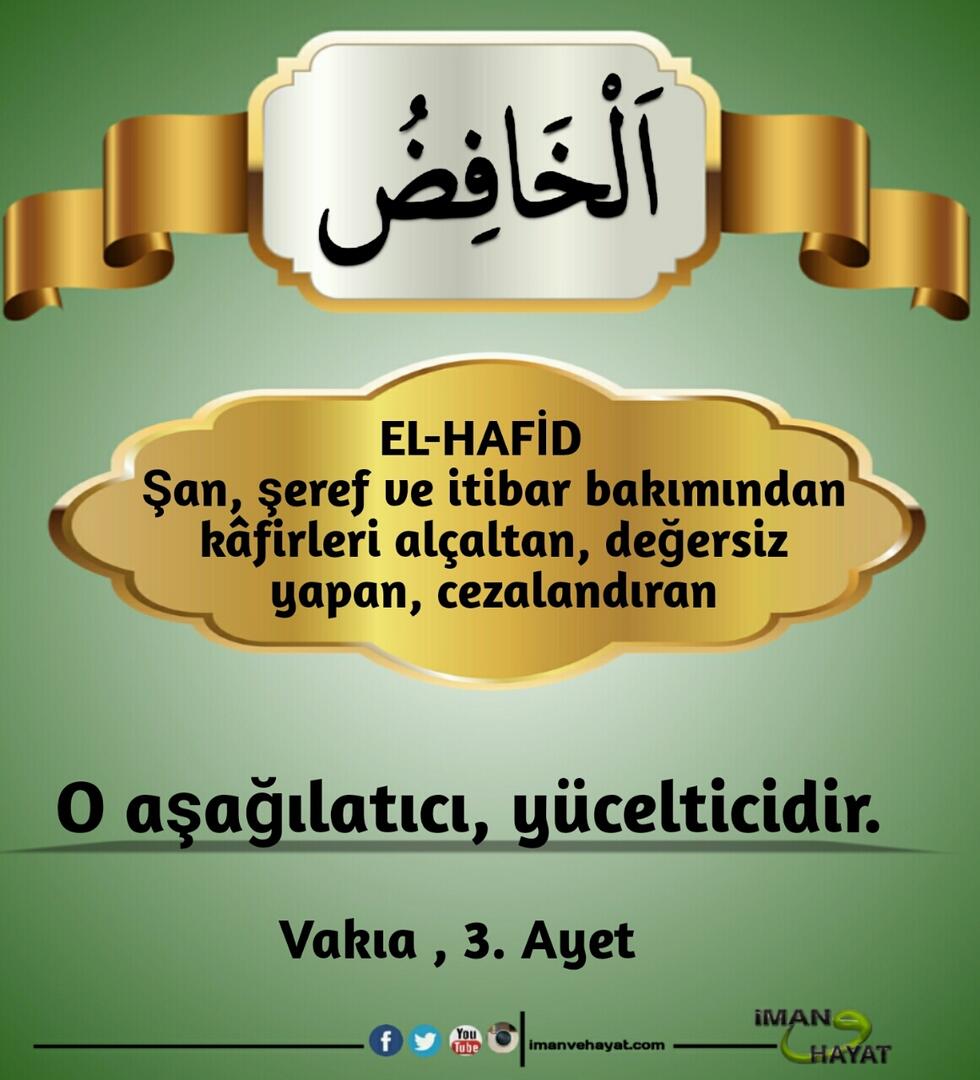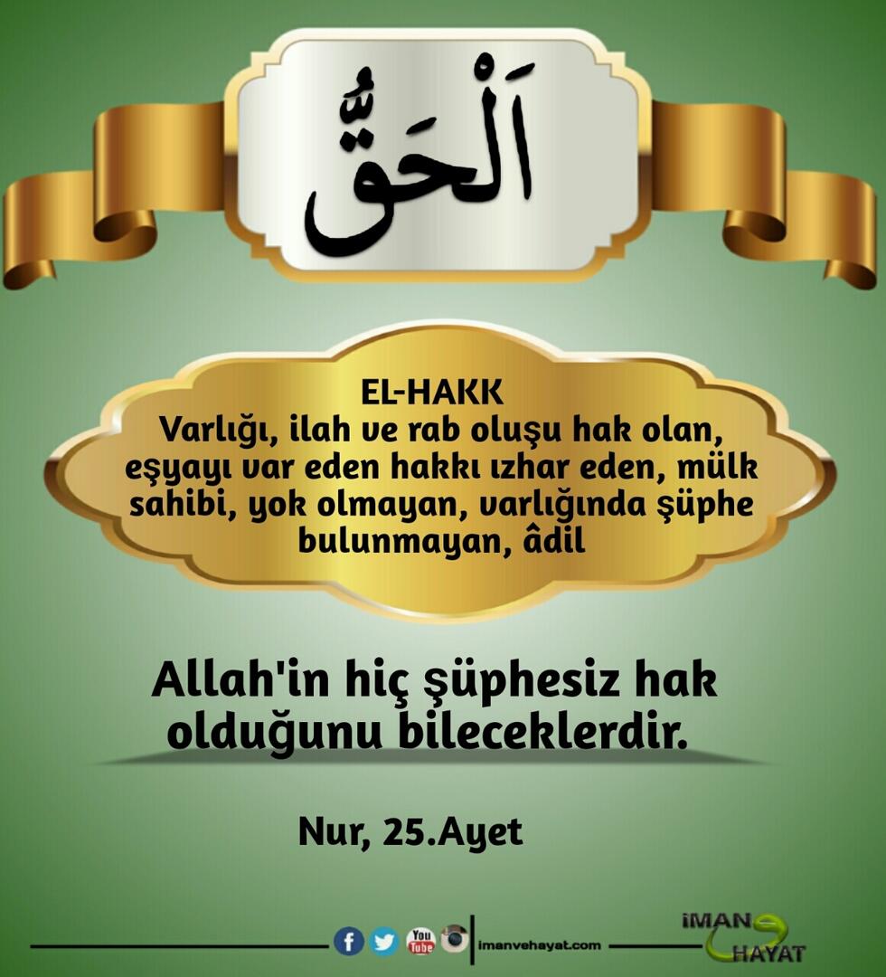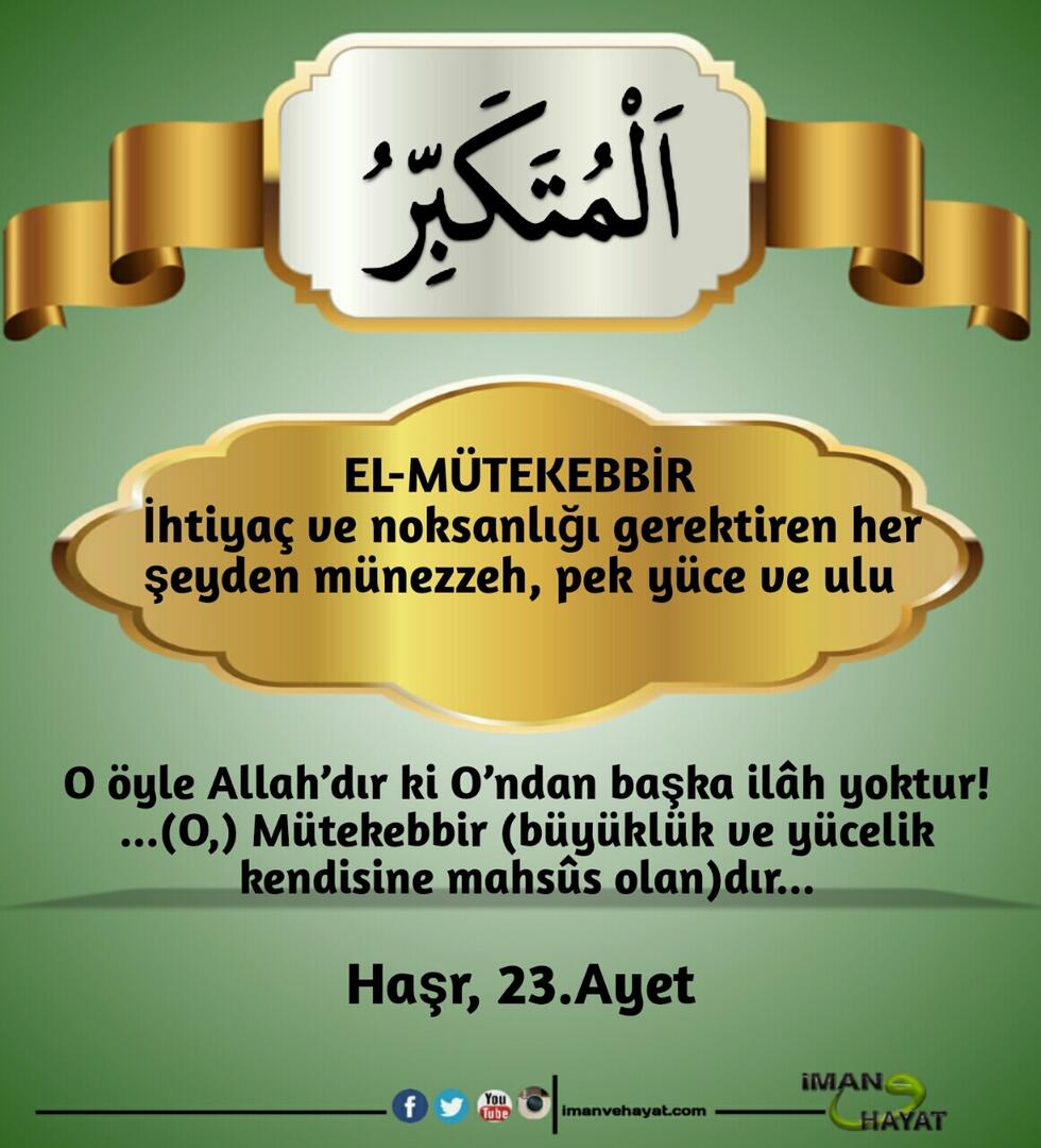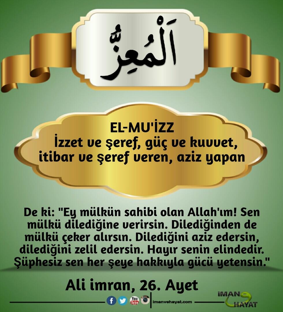 “İsimlerin en güzeli Allah’ındır. Öyleyse O’na bunlarla dua edin. O’nun isimlerinde aykırılığa ve inkara sapanları bırakın. Yapmakta oldukları dolayısıyla yakında cezalandırılacaklardır.” (Araf,180)