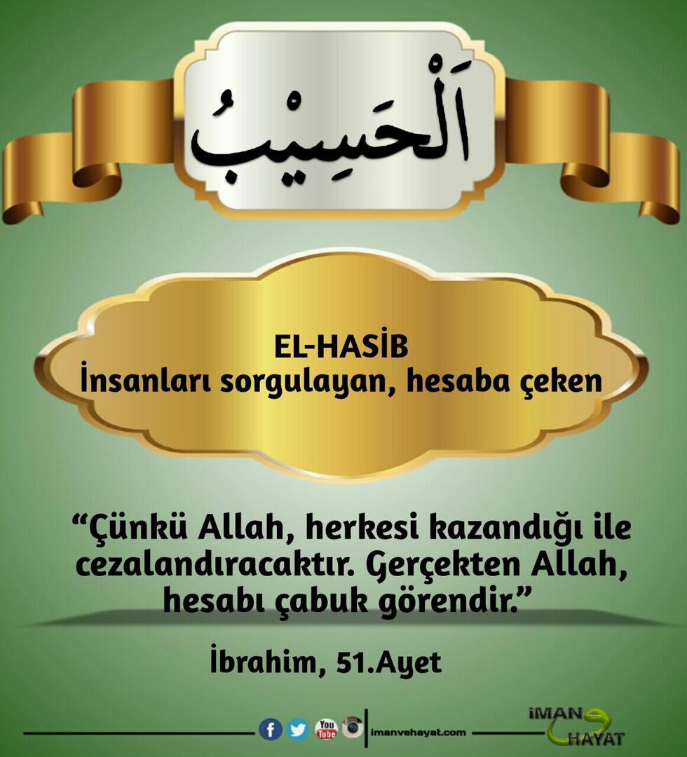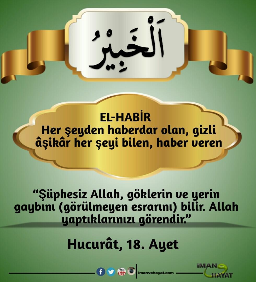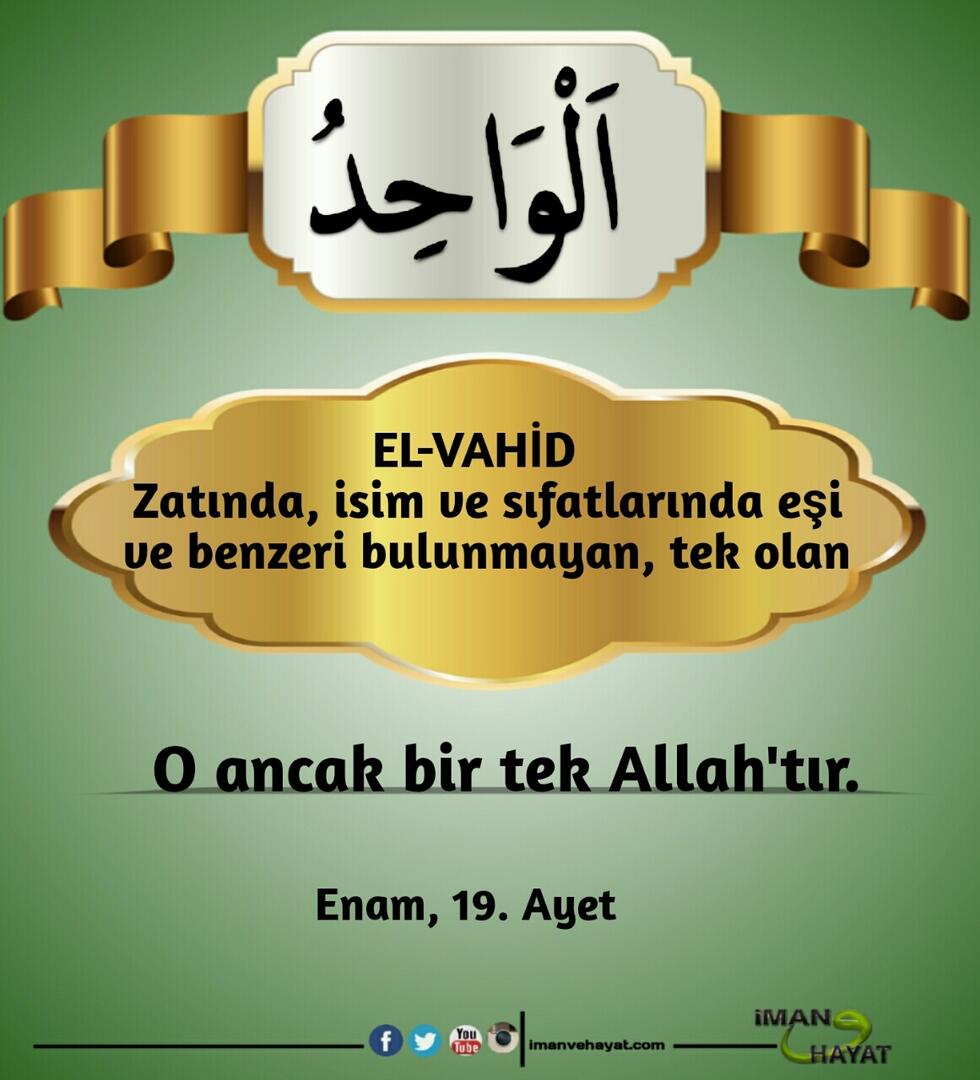 “Allah’ın yüzden bir eksik, doksandokuz ismi vardır. Kim onları ezberler ve sayarsa cennete girer. Allah tektir, tek olanı sever.” (Buhari, 6410; Müslim, 2677)