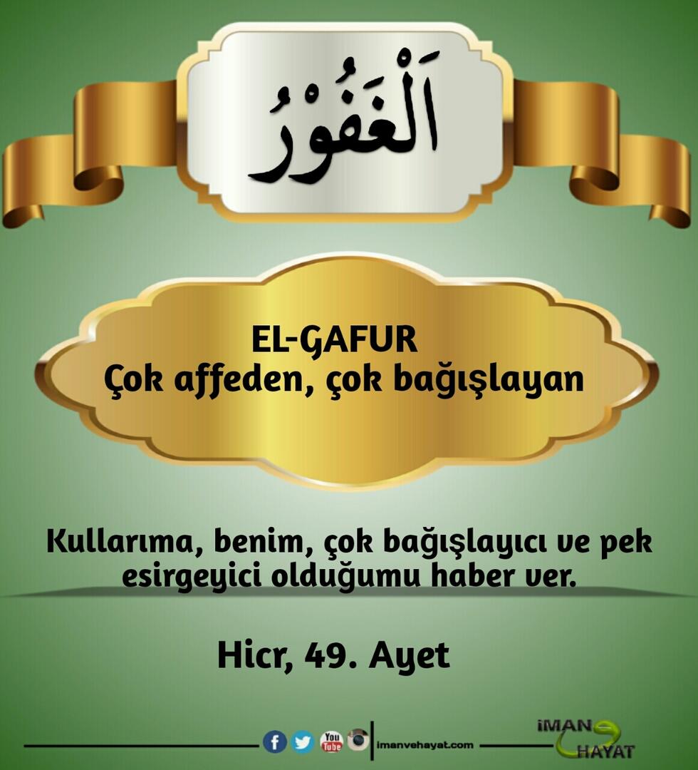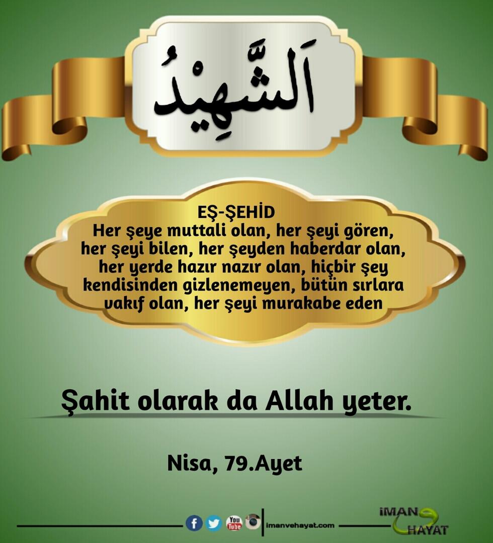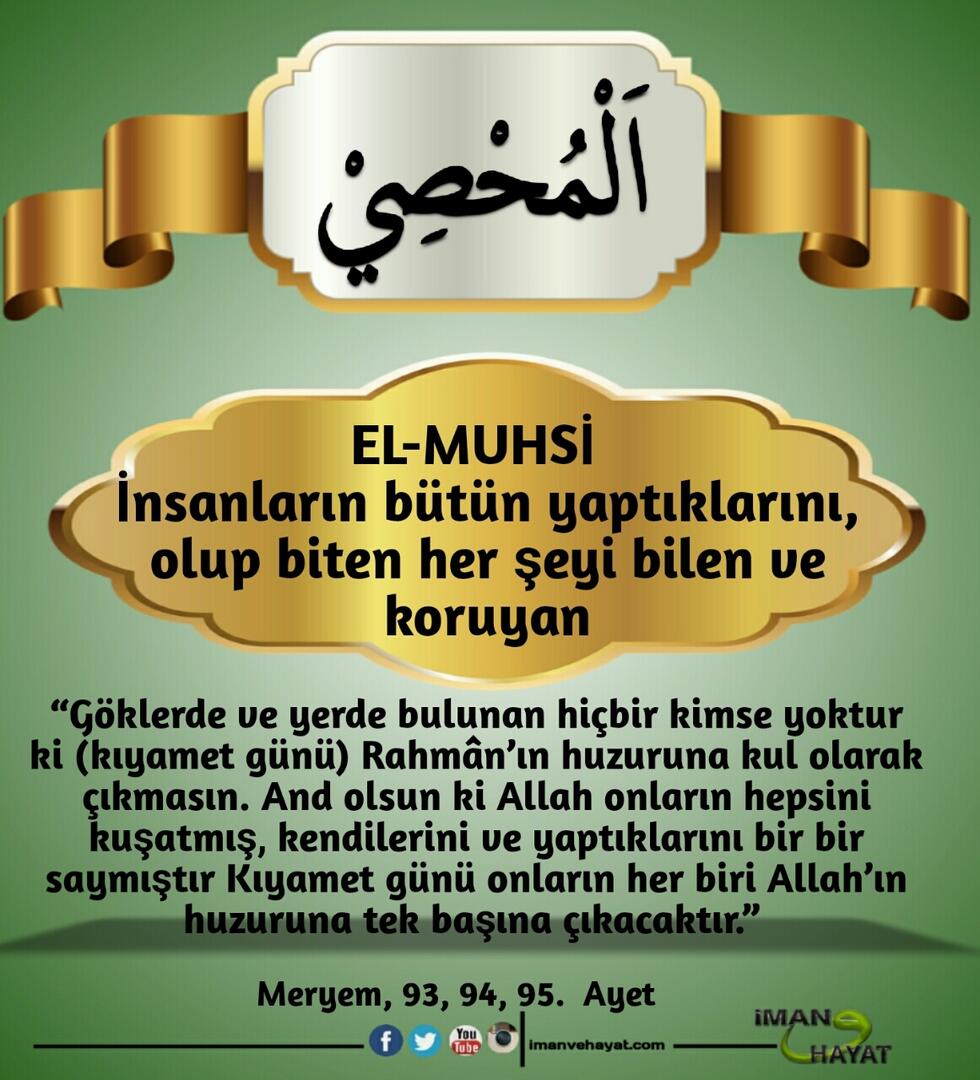 “Allah’ın yüzden bir eksik, doksandokuz ismi vardır. Kim onları ezberler ve sayarsa cennete girer. Allah tektir, tek olanı sever.” (Buhari, 6410; Müslim, 2677)