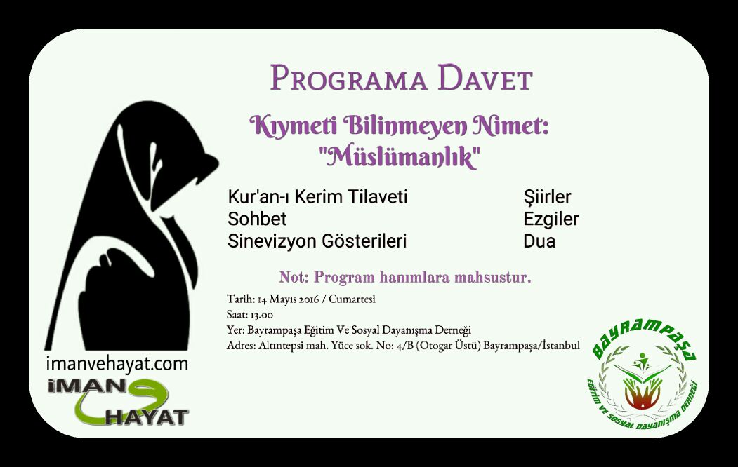 14 Mayıs Cumartesi Günü Saat: 13:00′ de olacak Programımıza tüm hanım kardeşlerimiz davetlidir.